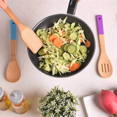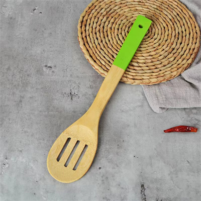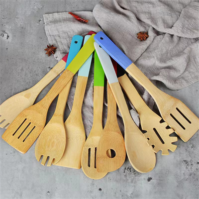 Spatula spoon set bamboo utensils with color handle